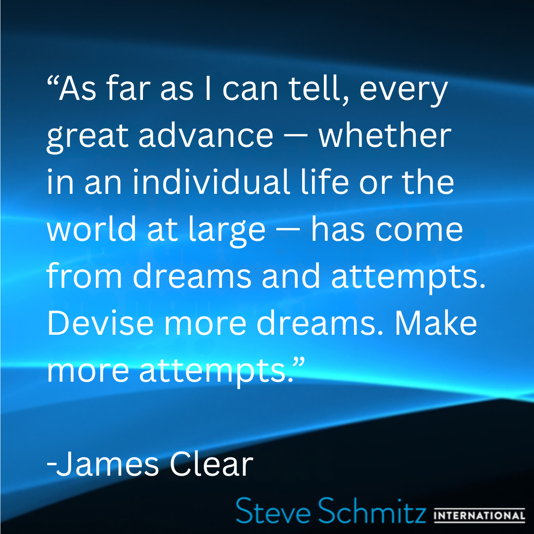 Steve Schmitz Quote of the Day, James Clear “As far as I can tell, every great advance – whether in an individual life or the world at large – has come from dreams and attempts. Devise more dreams. Make more attempts.”