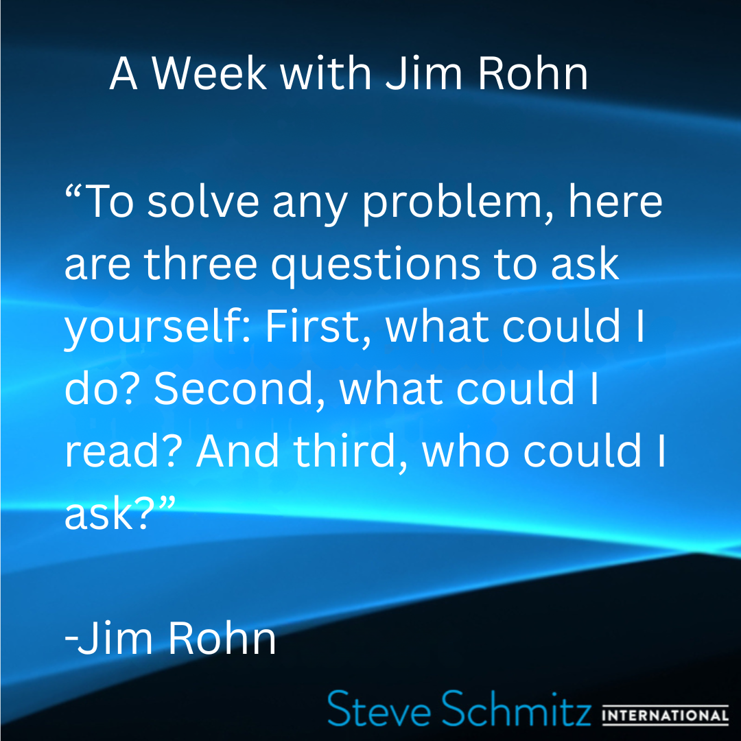 August 13, 2025 August 13, 2025/in Quote of the day /by Steve Schmitz Steve Schmitz Quote of the Day, Jim Rohn “To solve any problem, here are three question to ask yourself: First, what could I do? Second, what could I read? and third, who could I ask?” https://steveschmitzinternational.com/wp-content/uploads/2018/06/Steve-Schmitz-Logo-W.png 0 0 Steve Schmitz https://steveschmitzinternational.com/wp-content/uploads/2018/06/Steve-Schmitz-Logo-W.png Steve Schmitz2025-08-13 03:00:492025-09-08 05:45:23August 13, 2025