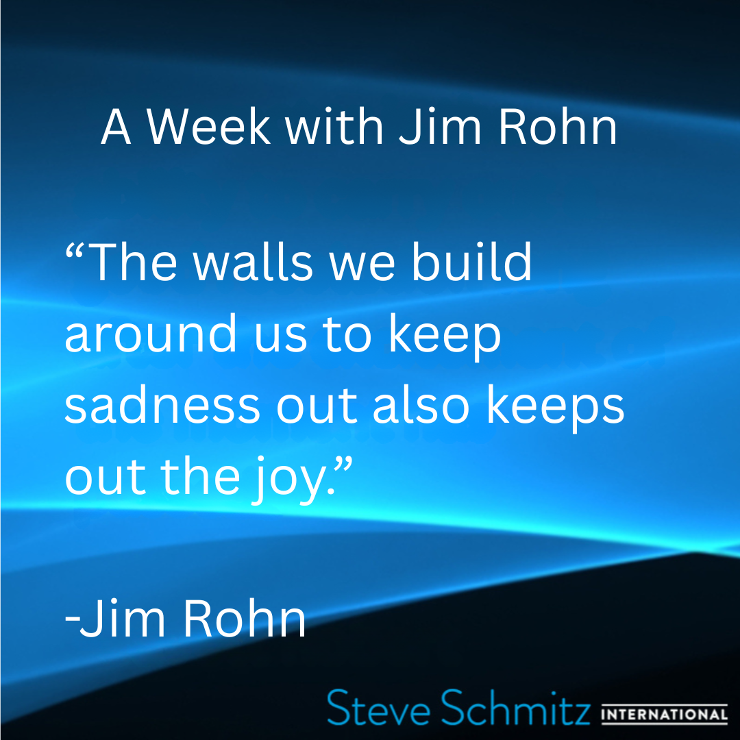 August 16, 2025 August 16, 2025/in Quote of the day /by Steve Schmitz Steve Schmitz Quote of the Day, Jim Rohn “The walls we build around us to keep sadness out also keeps out the joy.” https://steveschmitzinternational.com/wp-content/uploads/2018/06/Steve-Schmitz-Logo-W.png 0 0 Steve Schmitz https://steveschmitzinternational.com/wp-content/uploads/2018/06/Steve-Schmitz-Logo-W.png Steve Schmitz2025-08-16 03:00:122025-09-08 05:49:26August 16, 2025