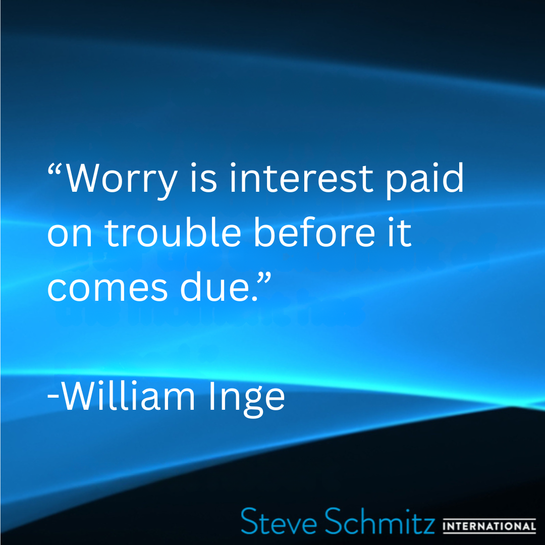 September 2, 2025 September 2, 2025/in Quote of the day /by Steve Schmitz Steve Schmitz Quote of the Day, William Inge “Worry is interest paid on trouble before it comes due.” https://steveschmitzinternational.com/wp-content/uploads/2018/06/Steve-Schmitz-Logo-W.png 0 0 Steve Schmitz https://steveschmitzinternational.com/wp-content/uploads/2018/06/Steve-Schmitz-Logo-W.png Steve Schmitz2025-09-02 03:00:572025-09-08 06:14:34September 2, 2025