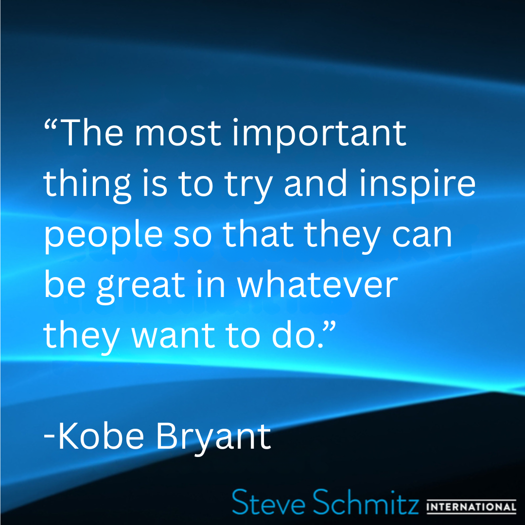 April 13, 2026 April 13, 2026/0 Comments/in Quote of the day /by Steve Schmitz Steve Schmitz Quote of the Day, Kobe Bryant “The most important thing is to try and inspire people so that they can be great in whatever they want to do.” https://steveschmitzinternational.com/wp-content/uploads/2018/06/Steve-Schmitz-Logo-W.png 0 0 Steve Schmitz https://steveschmitzinternational.com/wp-content/uploads/2018/06/Steve-Schmitz-Logo-W.png Steve Schmitz2026-04-13 03:00:292026-04-22 10:06:08April 13, 2026